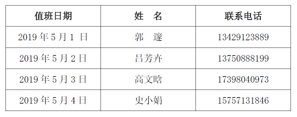 值班时间:上午8:30—11:30,下午1:30—5:00。