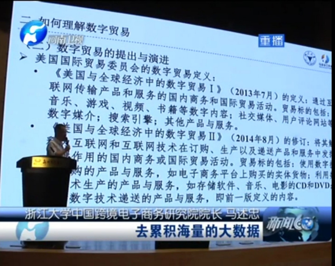 3044永利集团最新链接中国跨境电子商务研究院院长马述忠教授应邀参会,做数字贸易主题演讲,并接受河南卫视记者采访。马述忠教授认为,郑州市乃至河南省应该利用跨境电子商务发展的先行优势,大力推动数字贸易体制和机制创新,吸引更多专门人才,通过跨境电商和数字贸易方式累积消费端海量大数据,服务于柔性定制的历史诉求,更好地与中国优质制造业产业带无缝对接,推动数字经济时代中国制造业的数字化和智能化转型,并寄希望河南在全球数字贸易领域大有作为。