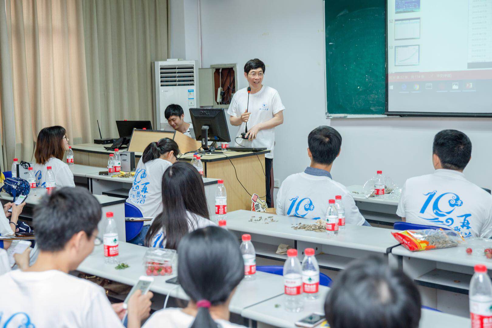 主题班会中,校友们共同回忆往昔难忘瞬间,逐个登台分享十年来各自的成长经历。趣味游戏环节,笑声回荡在整个走廊。李兴建老师压轴登场,亲切如故的他给大家带来一场精彩无比的投资课,观点鲜明,逻辑清晰,妙语连珠,满满干货,让原本意义非凡的值年返校聚会更添亮彩。