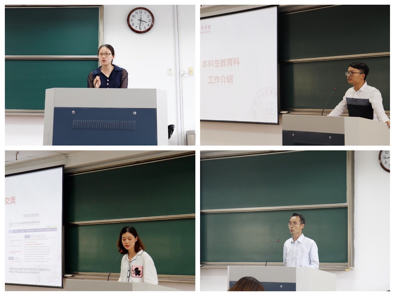 随后,团委、本科生教育科、外事科、实验室老师分别围绕团学工作、教育教学管理、对外交流工作、实验室操作等方面进行了详细的工作介绍。