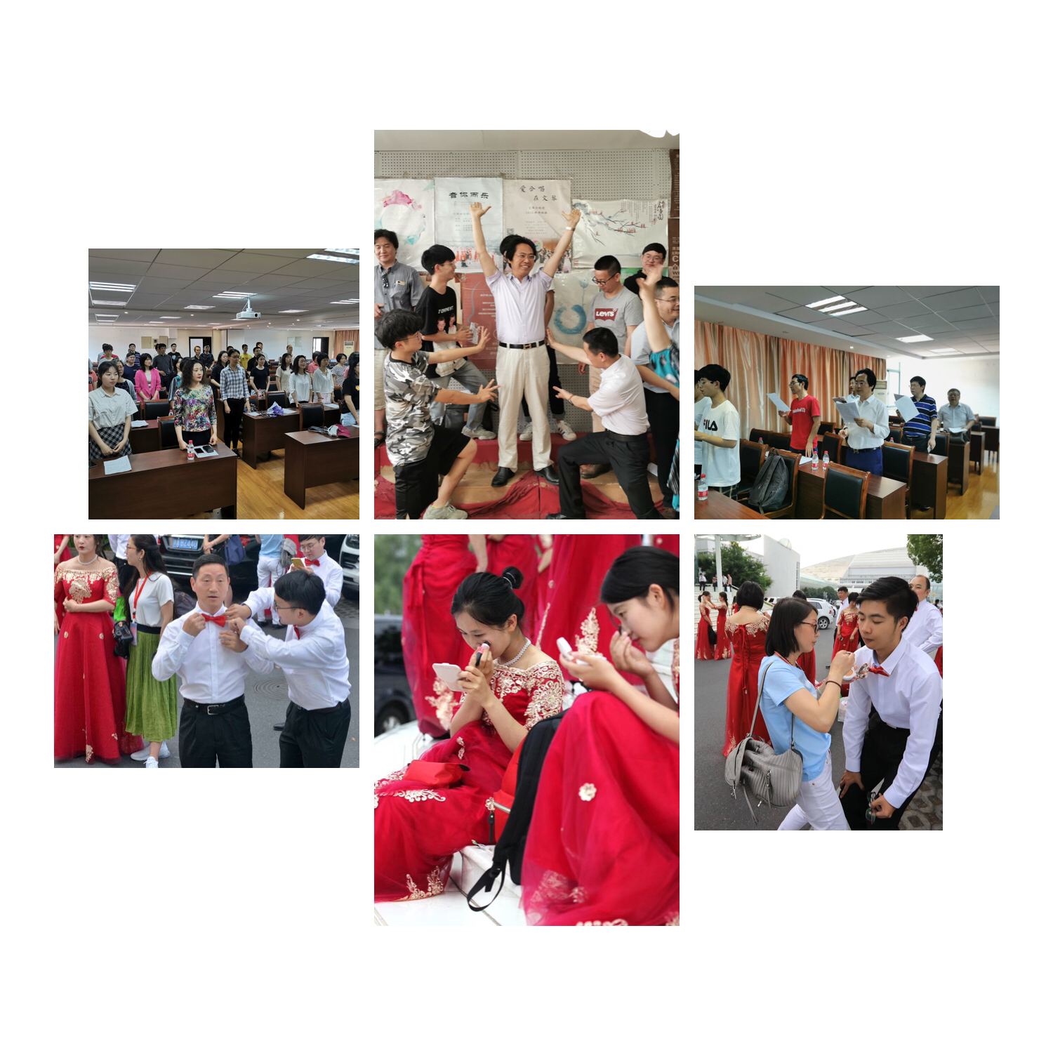 比赛前后,学院工会全体委员集体行动,从演出服装的置办到排练场地的落实,事无具细,贴心服务。置办服装时,院工会精挑细选,为节约成本,甚至一次发动了8位老师,共同在淘宝上置办服装。由于我们的排练师生分为玉泉和紫金港两地,为了解决交通问题,院工会预订大巴车来回接送……总之,院工会提供一切可方便的机会,用心服务,只为在比赛时赛出最佳水平,最高成绩。