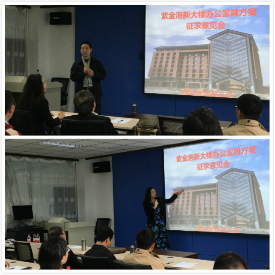 集思广益。为顺利推进学院搬迁工作,2018年10月,学院召开新大楼办公家具方案征求意见会,张子法介绍了新大楼的最新进展,工会主席郑备军动员老师们多提宝贵意见,宗晔向大家介绍了经党政联席会议讨论选出的3家厂商,并由3家厂商分别作了展示演讲,在座老师们纷纷提出了独到的看法和建议。