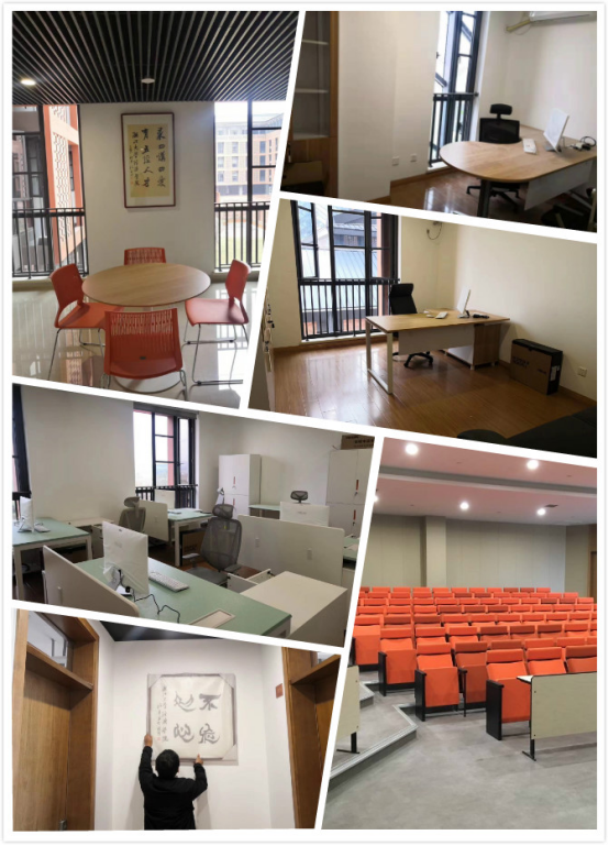 全面竣工。2019年3月,新大楼结顶交付,宗晔带领行政团队对大楼进行整体查看验收,针对存在的各类问题与学校各部门接洽修改方案,同时进行软装设计勘探讨论。随着搬迁的脚步越来越临近,学院召开新大楼搬迁工作座谈会,旨在确定家具方案,确保搬迁工作按时顺利完成。张子法、宗晔向大家介绍新大楼概况,王东、朱燕建、章华等老师积极献言献策。