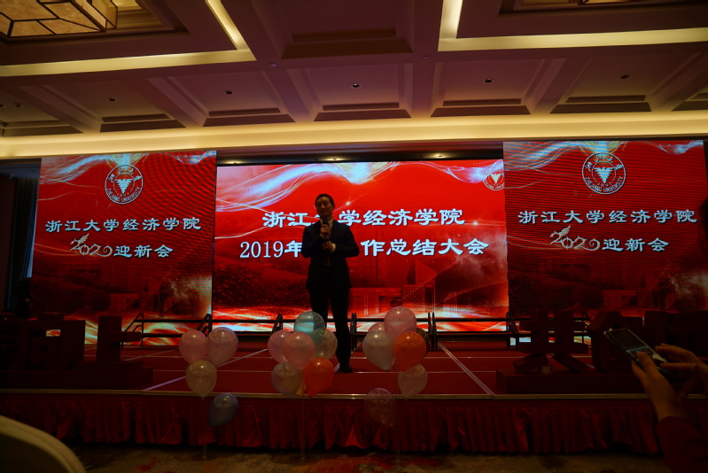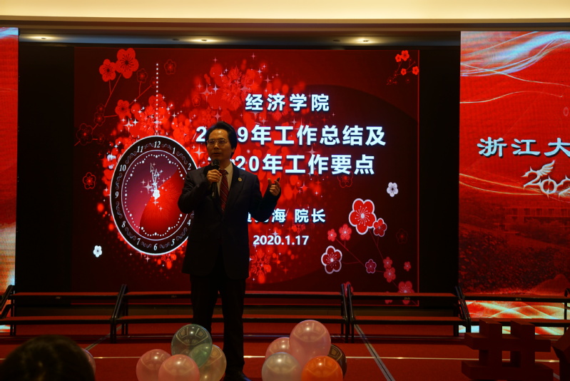 春华秋实,岁物丰成。黄先海以“执善向上 拥抱黄金时代;经世济民 共创世界一流”为主题对2019年度本学院的发展情况作了总结。主要从学科国际排名、高层次人才引育、教育教学、学科建设、科研成果、国际交流及党建、思政和基金筹集等十个方面进行盘点。他骄傲地向与会人员通报:经济学在英国泰晤士高等教育2020年大学排行榜中,挤身全球第50;在QS世界大学2019学科排名,浙大经济学和计量经济学、会计和金融学双双跃居前100位;在最新公布的ESI排名,经济与商业学科首次进入全球前1%。回顾一年的成绩,有硬核力量绘就的经院蓝图,也有民生小事点染的人间烟火,有激情跃动,也有细腻温暖。