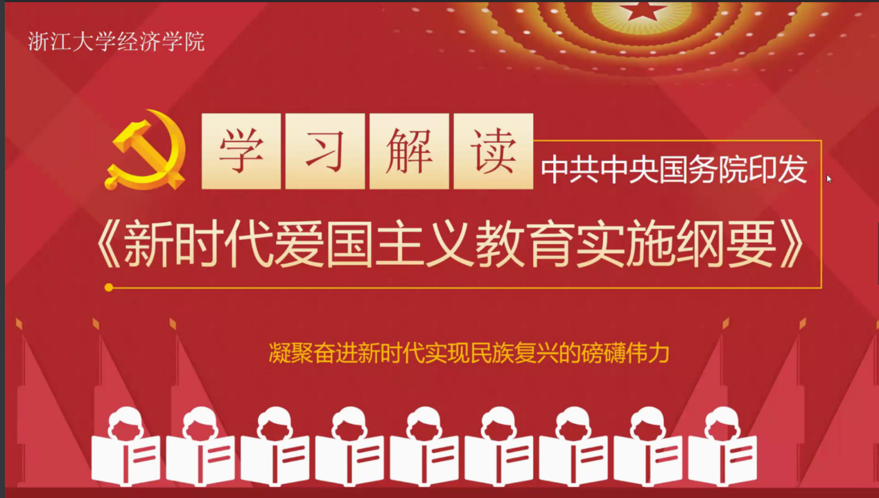 活动之初,由卢飞霞书记解读《新时代爱国主义教育实施纲要》。卢书记从《新时代爱国主义教育实施纲要》出台背景出发,对基本考虑点和特点进行分析,并围绕总体要求、基本内容、面向对象、实践载体、氛围营造、组织领导六大部分和34条内容进行逐一解读。卢书记提到,爱国主义不能停留在口号上,更应该体现在志向、情怀和行动上,并结合学习生活和学院工作,进行生动的分享和深刻的解读。新时代加强爱国主义教育,对于振奋民族精神、凝聚全民族力量、实现伟大复兴的中国梦,有着深远意义。