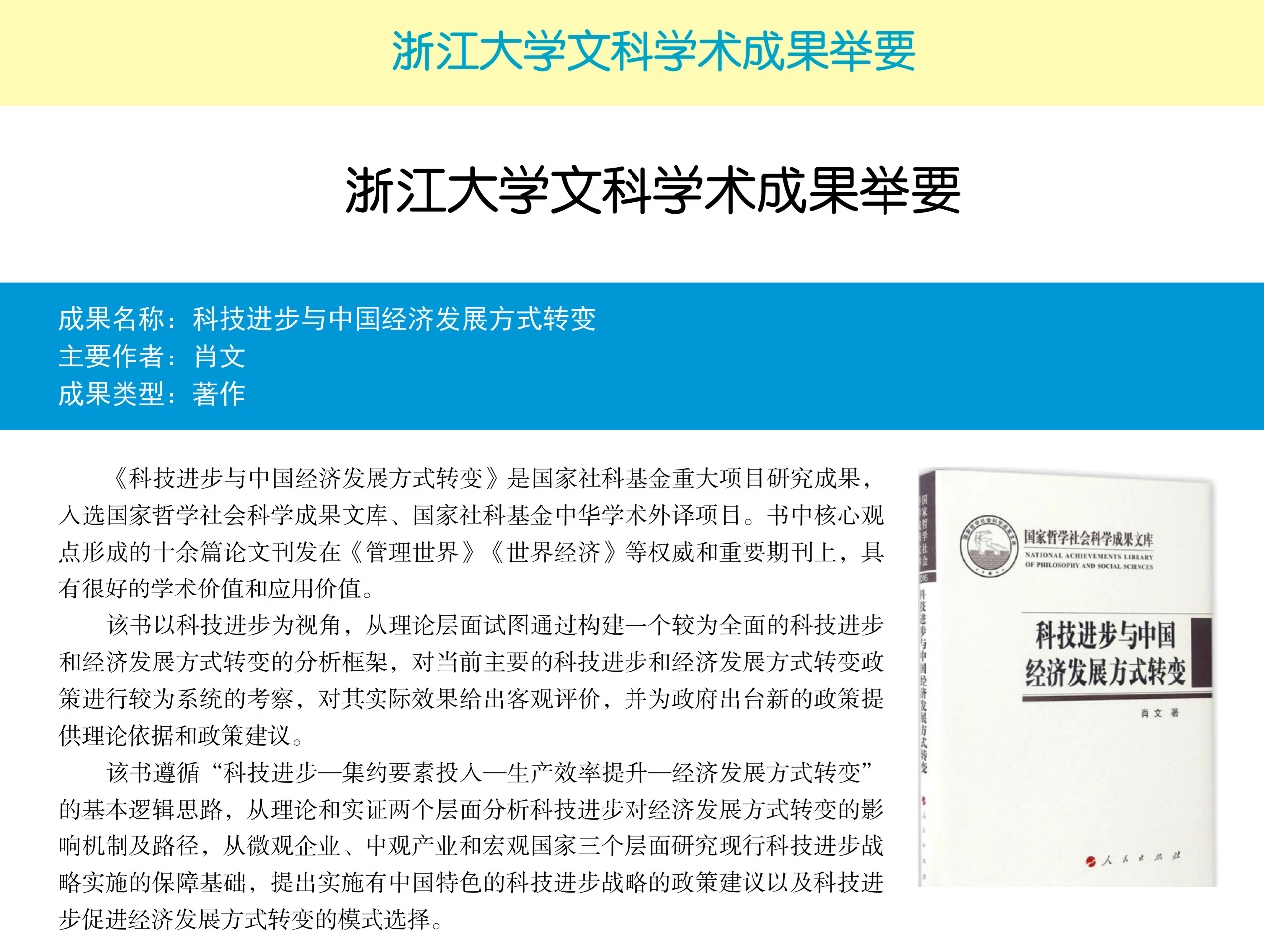 3044永利集团最新链接学报2020年首期文科成果举要发布,永利集团官网肖文教授的专著《科技进步与中国经济发展方式转变》被收录。