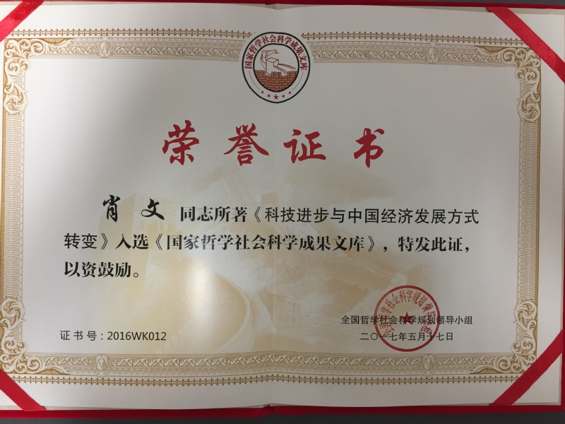 肖文教授著作入选3044永利集团最新链接学报文科学术成果举要