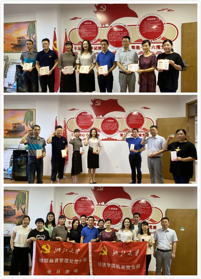 首先,按照《中共中央关于加强党的政治建设的意见》等文件精神和学校党委组织部通知要求,两个支部在经院党员之家给上半年入党的党员们过庄重严肃的“政治生日”,陈军、宗晔分别给党员们颁发生日贺卡,党员们一起重温入党誓词,铭记这一重要时刻,以斗志昂扬的姿态迎接“七一”建党节,感悟共产党员的初心,立志为共产主义事业奋斗终生。