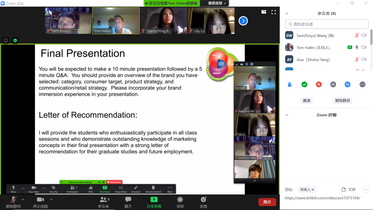 即使受疫情影响,本次交流只能采取线上的方式进行,但是在教授倾力教导、学员认真学习、同时学院和学校大力支持的背景下,本次商业分析课程仍然圆满地完成了。Tom教授的课程不仅仅局限于理论方法的传授,而是更多的教给同学如何去了解市场的本质,教给同学去探索市场规律的方法。从Tom教授的课程中,学到的远远不止理论与方法,更重要的是,提升了自我探索分析的能力,相信以后能够让同学以更好的市场思维投入到以后的学习工作中,发挥自己更大的社会价值。