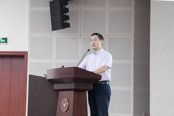 随后,方红生副院长向全体2019级本科生做了本科培养相关介绍。他首先详细阐释了学院的办学理念、定位与目标,接着围绕机构设置、师资队伍、学科建设、国际交流、科学研究等方面进行了详细介绍,并重点展示了学院的本科教学特色与亮点以及培养成效。最后他希望同学们能够持之以恒地下笨功夫,做好时间管理,努力使自己成为一名德才兼备的创新性人才。
