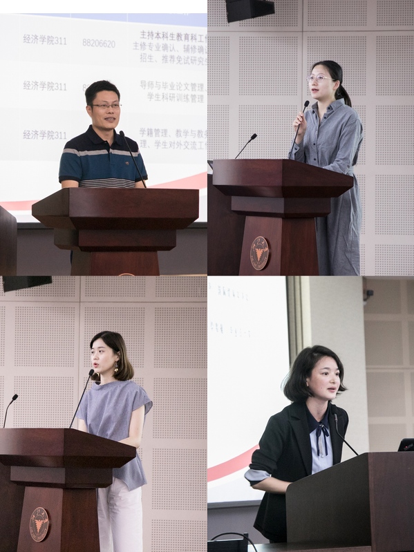 会上,相关科室老师还分别围绕团学工作、教育教学管理、对外交流工作、实验室操作等向同学们进行了工作介绍。