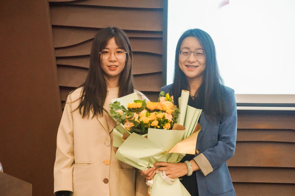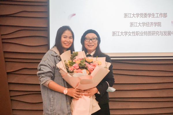 讲座结束后,女领学员代表为杨波教授和吴海燕教授献花,对两位老师百忙之中来为女领学员们做分享表示由衷的感谢。