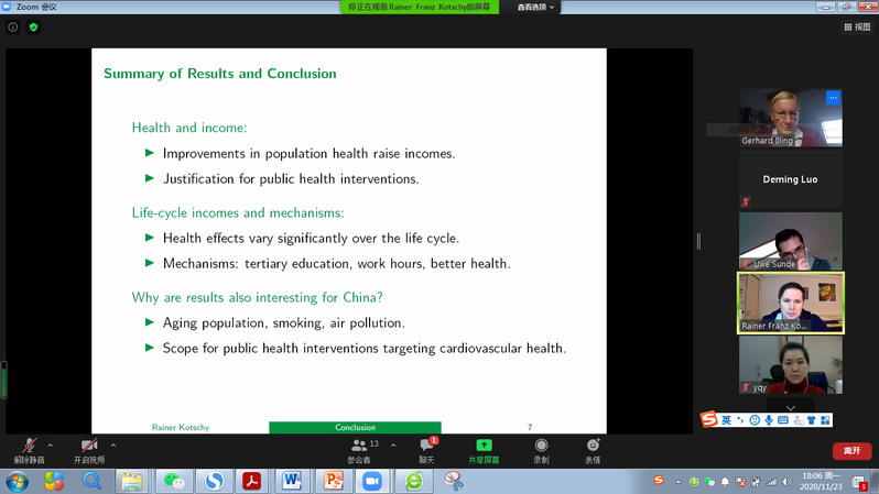 潘士远副院长主持Virtual Forum of the LMU-China Academic Network经济学分会议、罗德明教授做学术报告
