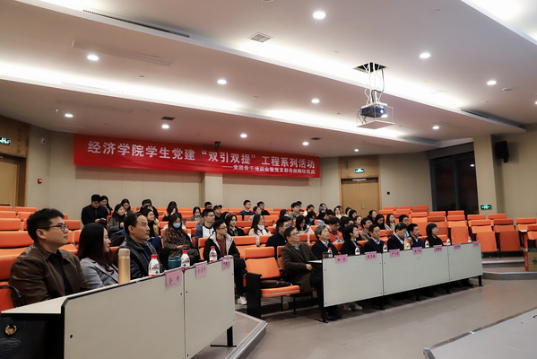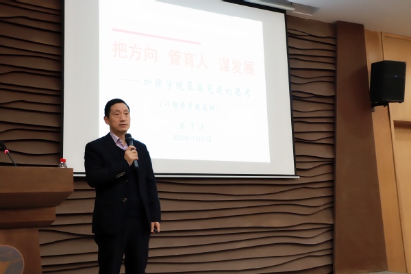 随后,张子法老师作“学习党的十九届五中全会精神”主题报告。报告围绕“五中全会擘画远景蓝图”展开,点明了“十四五”和 2035 年经济发展目标的“六个历史性”,然后落脚到经院党建工作总体思路,强调要扎实推进“四五六工程”,即强化“四讲四爱”工作理念、坚持“五经人才”培养目标、推进“六度党建”工作举措。张子法老师表示,3044永利集团最新链接要紧紧围绕“双一流”建设中心工作,以更大担当、更高标准、更实作为谋划党建工作新篇章,构建人才工作新格局,以一流党建引领一流经院建设,为学院发展提供坚强政治保障,为建设国内顶尖、世界一流的3044永利集团最新链接而不懈奋斗。