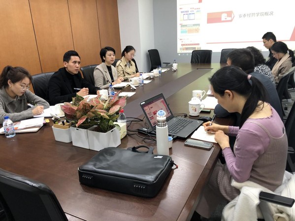 11月26日上午,卢飞霞老师一行来到上海交通大学安泰经济与管理学院调研,安泰经济与管理学院研工办主任赵建敏、学生事务与职业发展办公室丁乐平等六名老师出席座谈会并对浙大经院的到访表示热烈的欢迎。赵建敏主任首先介绍了该院的发展历程、师生结构等学院概况。接着,丁乐平老师就学生职业发展办公室的设置和功能进行了重点阐述。与会人员还就党建亮点工作、职业发展市场开拓等具体问题进行了互动交流。最后,双方互送礼物并一致表示,希望加强相互的交流合作,更好的为学生提供学生事务和就业指导方面的服务。