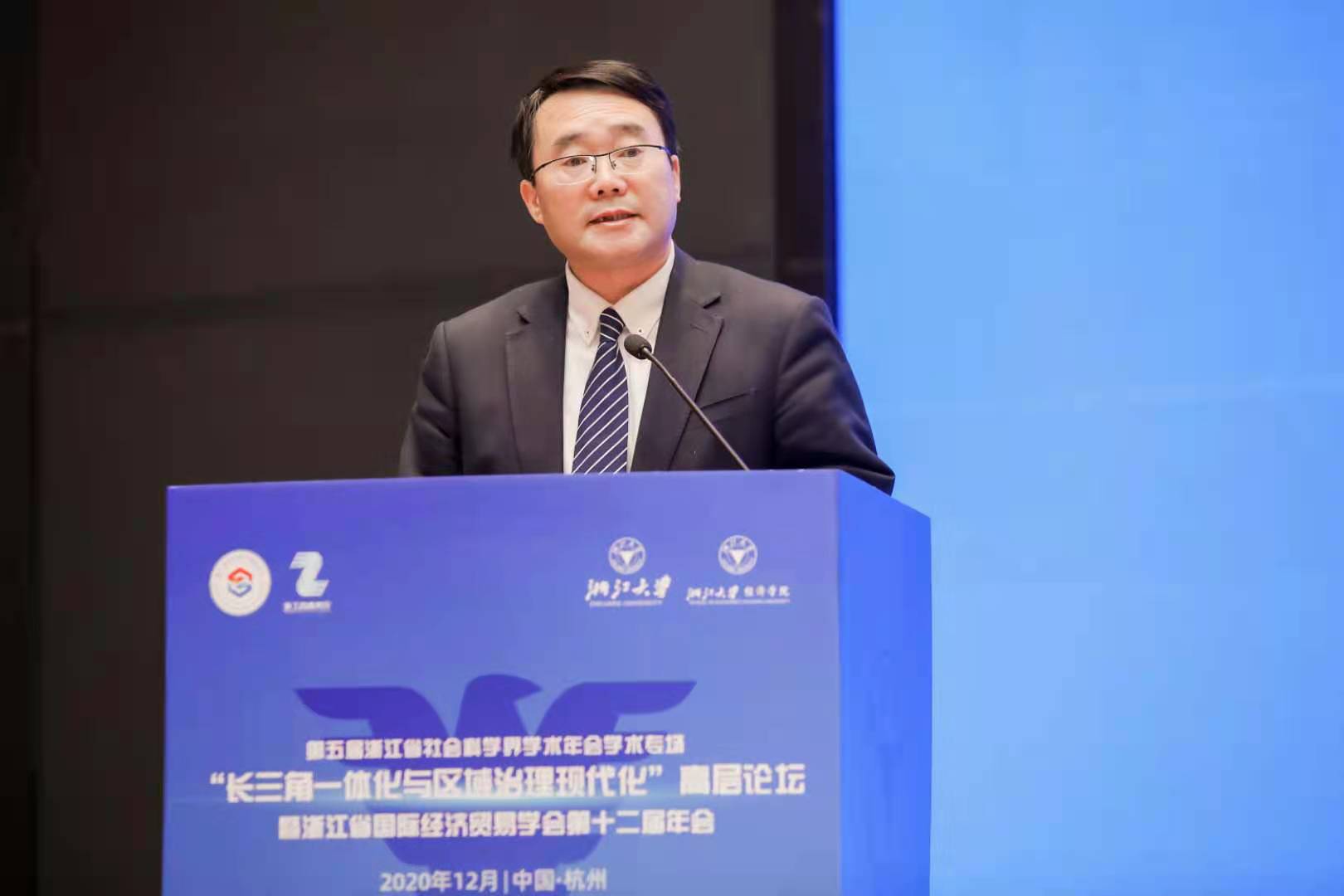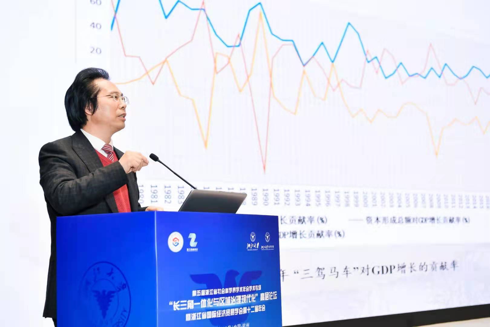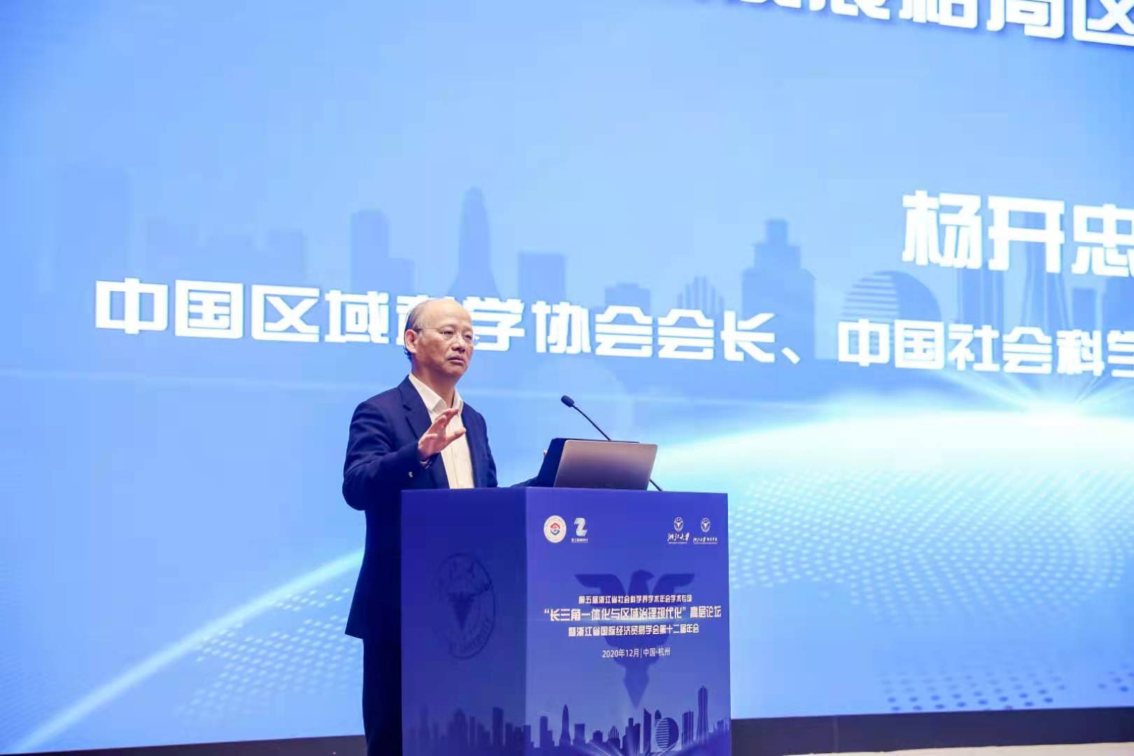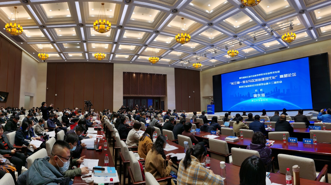 2020年12月12日,由浙江省社会科学界联合会、浙江省商务厅主办,浙江省国际经济贸易学会、3044永利集团最新链接长三角一体化发展研究中心、3044永利集团最新链接3044永利集团最新链接、浙江省商务研究院、3044永利集团最新链接区域经济开放与发展研究中心、3044永利集团最新链接中国与全球经济政策研究中心承办的第五届浙江省社会科学界学术年会学术专场“长三角一体化与区域治理现代化”高层论坛在3044永利集团最新链接求是大讲堂隆重召开。浙江省委宣传部副部长、浙江省社会科学界联合会主席盛世豪出席并做主旨报告;浙江省商务厅副厅长张钱江、3044永利集团最新链接副校长黄先海分别致辞;中国区域科学协会会长、中国社会科学院生态文明研究所党委书记杨开忠教授、黄先海副校长、上海财经大学城市与区域科学学院副院长张学良教授及长三角区域合作办公室浙江组组长江振林博士、浙江省商务厅法规处杨威处长等专家学者发表了主旨演讲;浙江省社科联二级巡视员俞晓光出席论坛;来自全省社科系统、商务系统、各大高校、科研院所、商协会及媒体的200余名代表参加了此次论坛。新华社、人民日报、经济日报、浙江日报等各大主流媒体对此次论坛进行了详细报道。