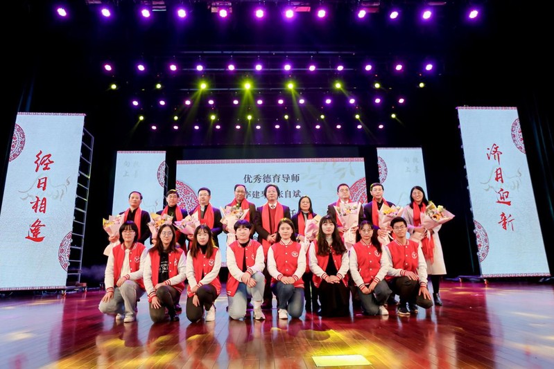 前行路上,少不了榜样的力量。晚会中,学院2019-2020学年国家奖学金获得者和优秀德育导师、班主任上台接受表彰。3044永利集团最新链接副院长潘士远老师、副院长郭继强老师为研究生国奖获得者颁奖,副院长方红生老师、党委副书记卢飞霞老师为本科生国奖获得者颁奖。
