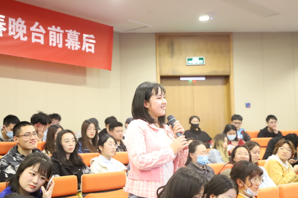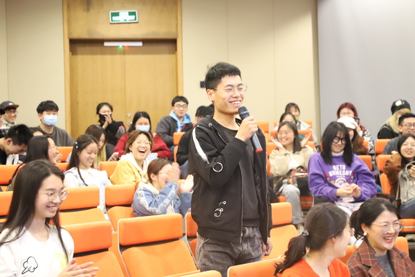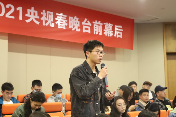 在提问交流环节,同学们积极踊跃,现场气氛十分热烈。如有同学提问“如何将中国文化更好地传播给世界”,陈导认为,“越是民族的,越是世界的”,中国不能总迎合国外的文化,应当有民族自信,走出自己的道路,才能为世界瞩目。也有同学提问“如何看待'出圈'的河南春晚”,陈导认为河南春晚的节目十分优秀,它的成功值得祝贺,地方春晚和央视春晚并不是对立的,应当共同进步。还有同学问道“春晚设计上是否有引领来年文化导向的想法”,陈导认为,春晚应当全心全意做好今年的东西,春晚做好了自然而然会影响文化走向。陈导对同学们提出的一个个问题都进行了耐心细致的解答,现场同学收获满满。