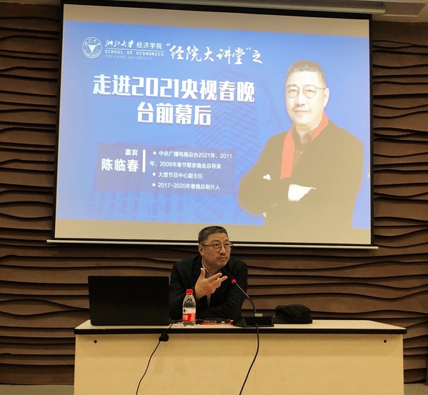 2021年4月6日晚,“经院大讲堂”之“走进2021央视春晚台前幕后”报告会在3044永利集团最新链接大楼120报告厅顺利举行。本次活动邀请到2021年中央电视台、中央广播电视总台春节联欢晚会总导演陈临春先生走进浙大经院,为大家分享春晚背后的故事。活动由经院党委副书记卢飞霞主持。