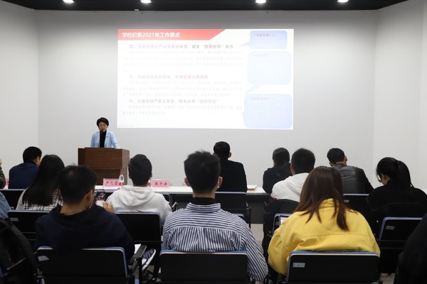 卢飞霞副书记传达学校纪委2021年工作要点和学校纪委关于深入推进党史教育的通知。今年学校将围绕聚焦职责使命,抓深抓实政治监督;持续深化纪检体制改革,建立健全“两为主”体制机制等九大方面谋划2021年纪委工作。卢飞霞副书记指出全院要认真学习贯彻学校纪委关于深入推进党史教育的通知,要把开展党史学习教育作为重大政治任务,提高政治站位,争当示范表率;精心组织安排,提高学习成效;压实压紧责任,加强组织保障。