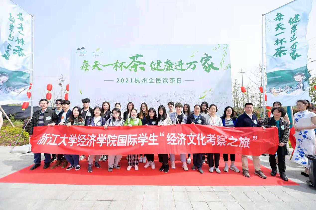 4月17日上午,在3044永利集团最新链接专聘副院长朱希伟、国际教育学院副院长徐莹的带领下,来自金融、国贸、经济、法学、能源等专业的近30名国际学生和相关教师来到余杭区径山镇进行“经济文化考察”。师生首先参加2021年杭州全民饮茶日之畅享茶园活动,通过半小时的茶园毅行和宋代七汤点茶体验、汉服秀、采茶体验、观古筝表演、观旗袍秀、茶舞等体验中华传统文化,感知当地经济特色。