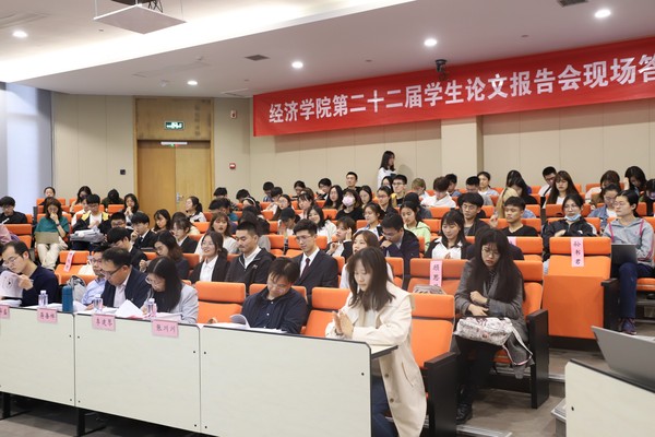 金融学系教授蒋岳祥、经济学系教授李建琴、国际经济学系教授宋华盛、劳动经济学系百人计划研究员张川川、财政学系百人计划研究员王宇等嘉宾评委出席本次活动,经院学子济济一堂,共同参与这一年一度的学术盛宴。