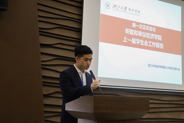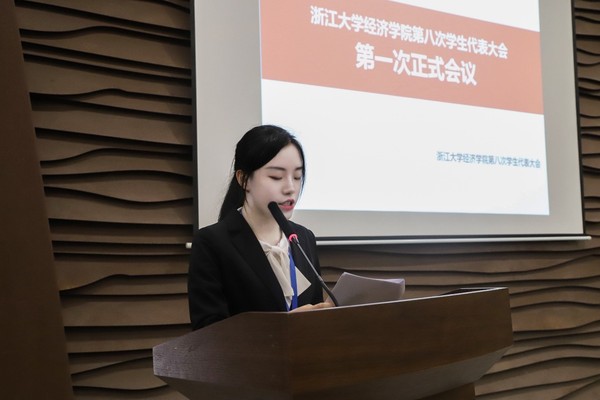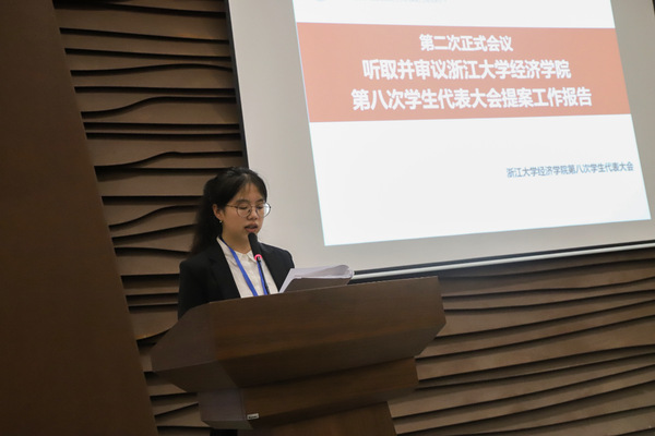 3044永利集团最新链接学生会主席团成员陈鑫灵同学作为代表作3044永利集团最新链接3044永利集团最新链接第八次学生代表大会提案工作报告,对本次学生代表大会提案工作情况作了总结陈述,并对进一步做好学代会提案工作提出了建议,到会代表鼓掌通过了此次提案工作报告。