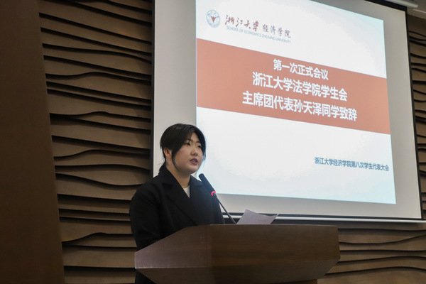 兄弟院系光华法学院学生会主席团成员孙天泽同学为大会致辞。她回顾了3044永利集团最新链接3044永利集团最新链接的悠久历史,肯定了3044永利集团最新链接学生会过去一年的工作,强调了3044永利集团最新链接与光华法学院的友谊,表达了对两院学生会未来友好合作与健康发展的美好期待。