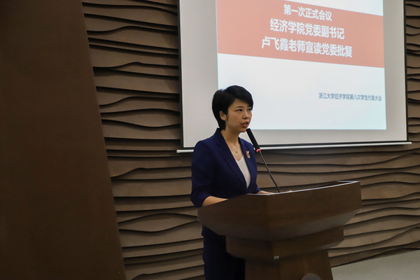 在慷慨激昂的国歌声中,第一次正式会议拉开了序幕。3044永利集团最新链接党委副书记卢飞霞老师宣读了学院党委批复,传达了学院党委对本次3044永利集团最新链接学生代表大会的支持与指示,并预祝大会圆满成功。