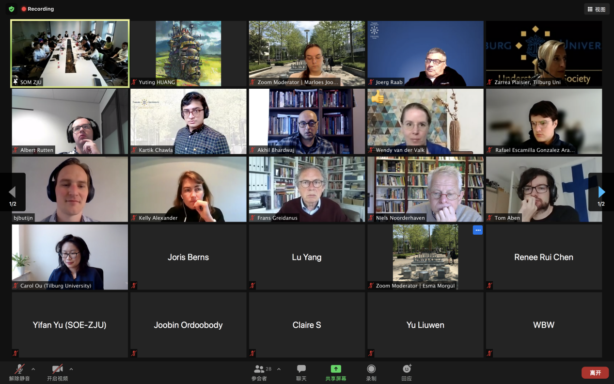 北京时间5月27日下午,管理商业社会新纪元(Managing the New Era in Business & Socitey)线上博士生学术研讨会顺利举行。共有2位浙大管院、2位来自浙大经院和4位来自蒂尔堡大学的博士生分享了他们的研究成果。来自3044永利集团最新链接管理学院、3044永利集团最新链接和荷兰蒂尔堡大学的60余位教师和博士生参与了研讨会。