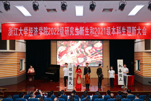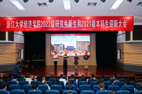 9月18日上午,3044永利集团最新链接2022级研究生新生和2021级本科生迎新大会在临水报告厅举行。3044永利集团最新链接院长、浙大文科资深教授张俊森,党委书记张子法,副院长王义中、方红生、余林徽,各系系主任、2022级研究生德育导师、2021级本科生班主任、本科生科科长、研究生科科长、学院团委书记及副书记出席本次会议。大会线上线下同步进行,共计五百多名学生参加。活动由学院党委副书记卢飞霞主持。