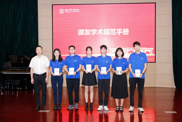 学术诚信是同学们的生命线。副院长方红生为新生代表颁发学术规范手册,希望同学们及早树立“恪守学术规范,珍爱学术声誉”的治学态度。